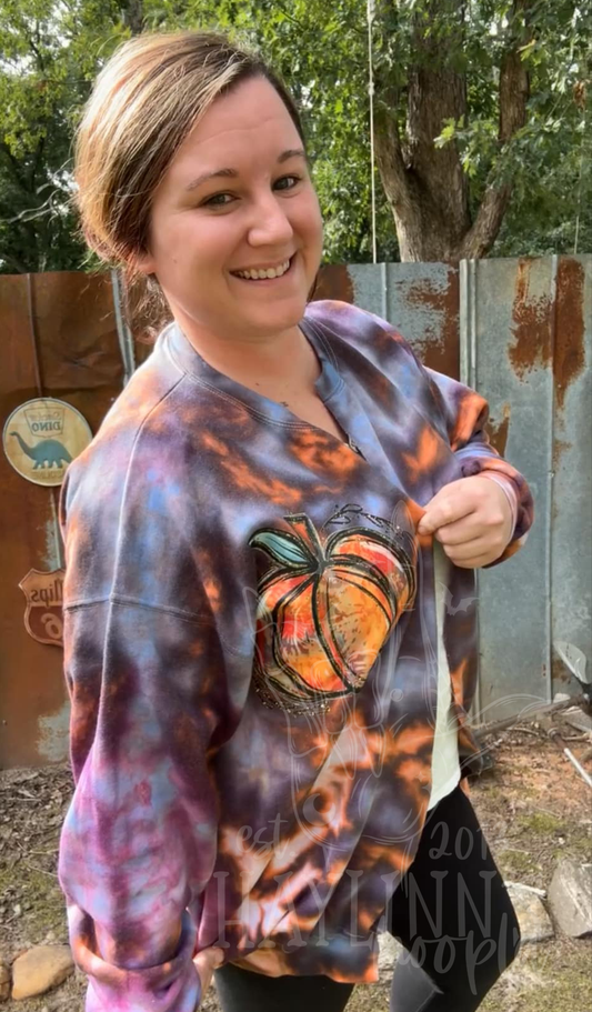 EXCLUSIVE Fall Watercolor Pumpkin ICE-DYED Cardi-Crew