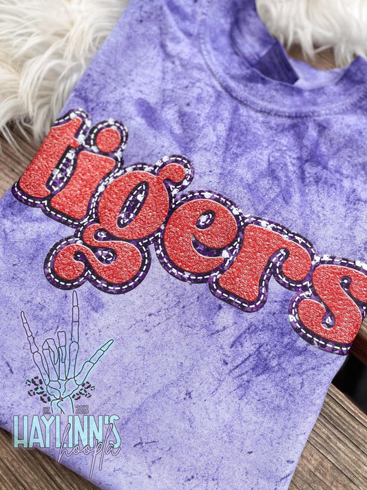Trendy Faux Sequin/Embroidered TIGERS Mascot DIGITAL DESIGN {orange/purple}
