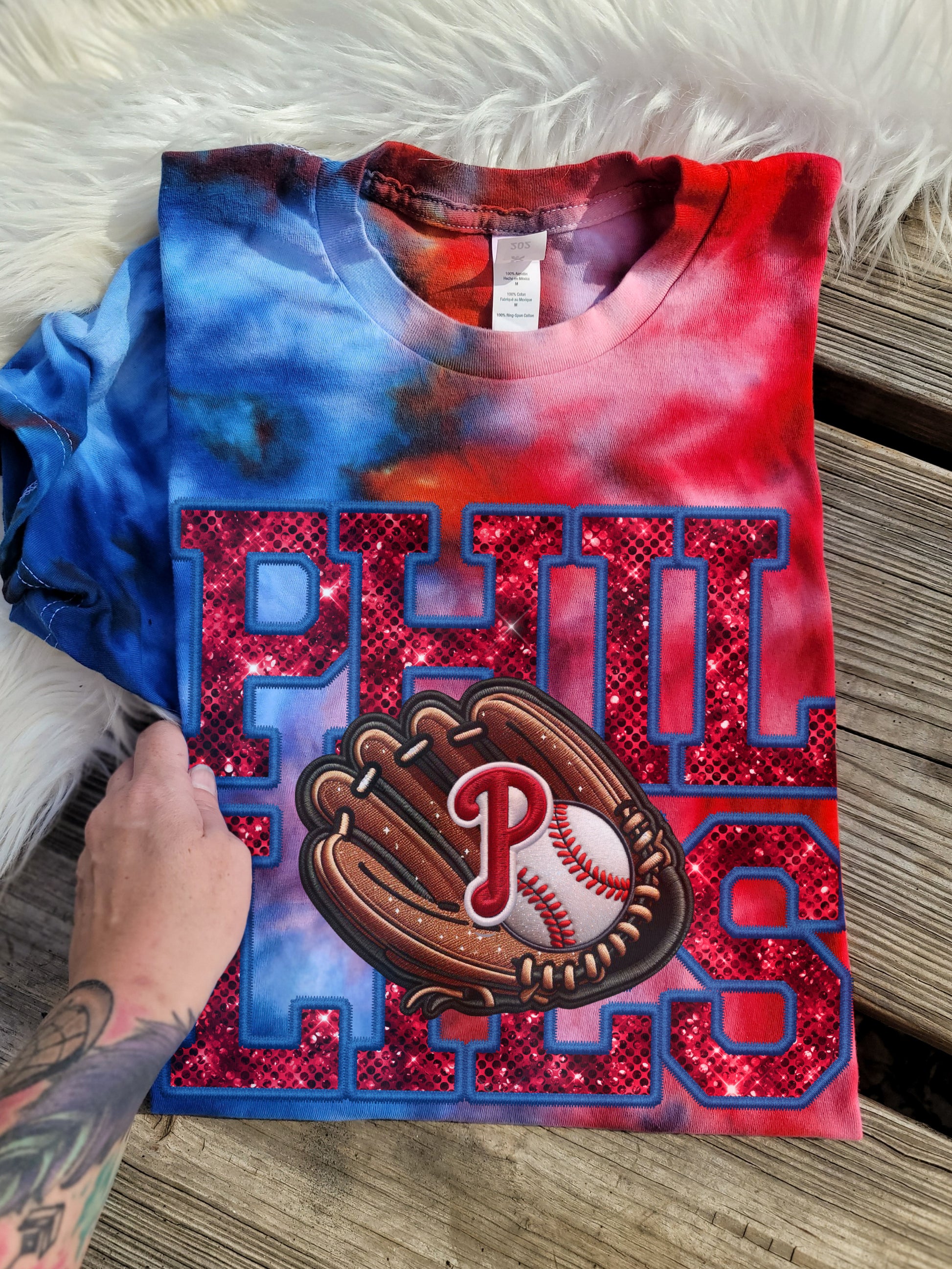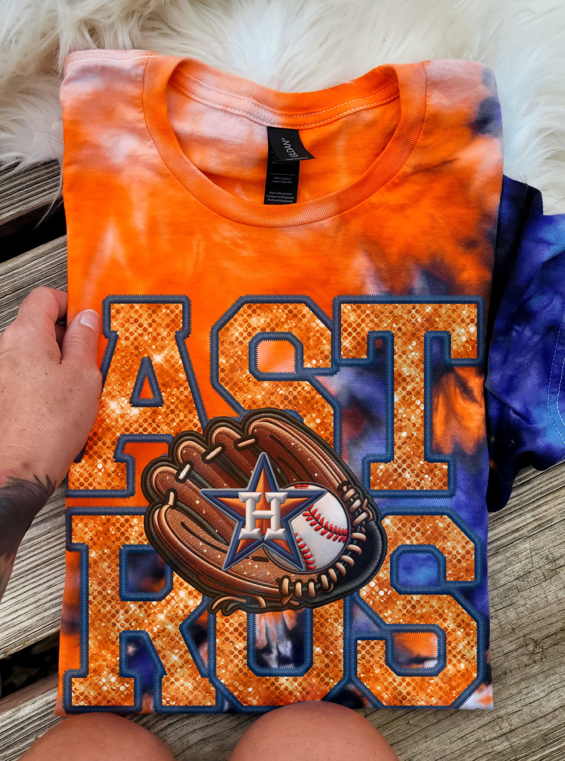 FAUX EMBROIDERED Baseball Glove {Ice Dyed} Tee